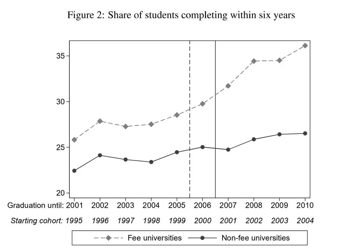 Following a landmark court ruling in 2005, more than half of Germany’s universities started charging tuition fees, which were later abolished in a staggered manner. We exploit the fact that even students who were already enrolled had to start paying fees. We show that fees increase study effort and degree completion among these students. However, fees also decrease first-time university enrollment among high school graduates. Combining this enrollment impact with the effect on completion, we find that fees around the zero-price margin have only little effect on overall educational attainment. We conclude by discussing policies targeting the separate effect margins of fees and caution against a general abolition.